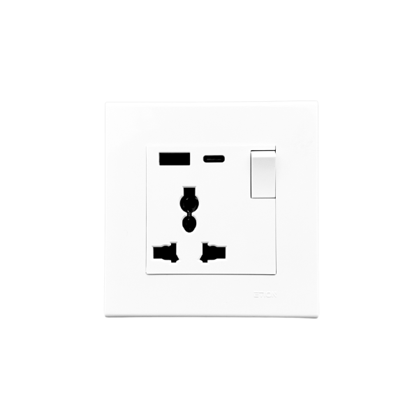 SWITCH SOCKET 1G UNIVERSAL WITH 20W USB TYPE A & C FAST CHARGER