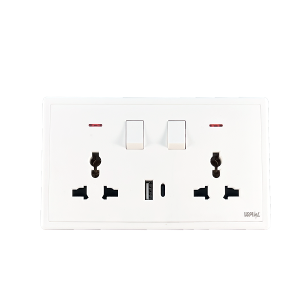 SWITCH SOCKET 2G UNIVERSAL + NEON WITH USB TYPE A & C FAST CHARGER (Arora Series)